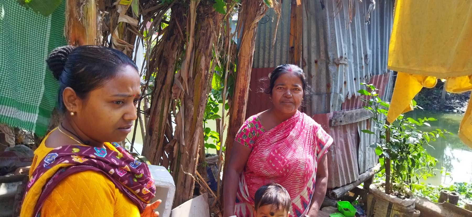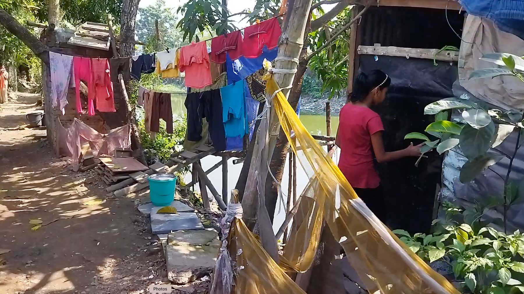 Unsafe bamboo toilets are being used by children, adolescent girls, and women near a dirty canal, posing health and safety risks.